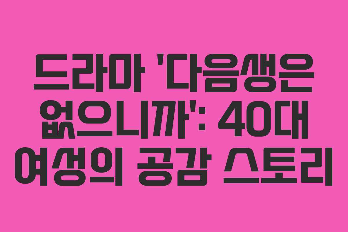 드라마 ‘다음생은 없으니까’: 40대 여성의 공감 스토리