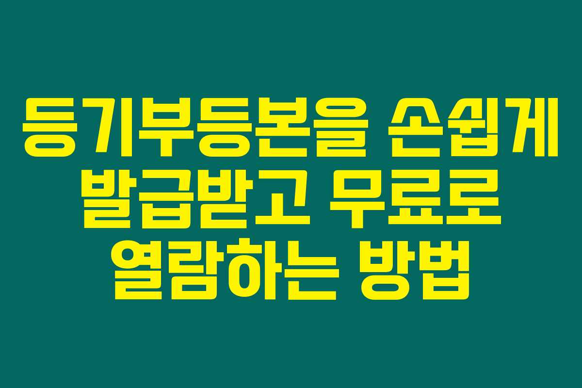 등기부등본은 부동산 거래의 기본적인 서류로, 특별히 계약 전 반드시 확인해야 하는 중요한 문서입니다. 제가 직접 경험해본 바로는, 필요한 경우에 인터넷을 통해 손쉽게 발급받거나 무료로 열람할 수 있는 방법이 여러 가지가 있습니다. 아래를 읽어보시면 등기부등본을 간편하게 열람하고 발급받는 방법을 자세히 알 수 있을 거에요.