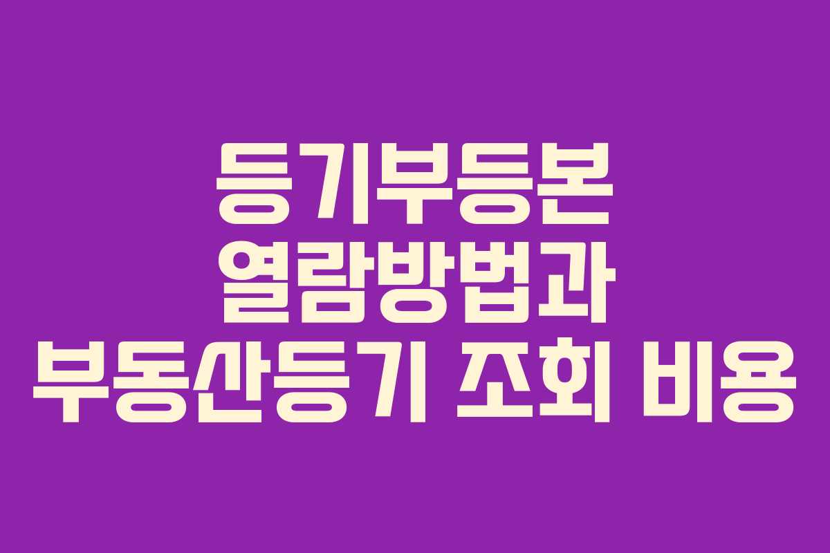 부동산 거래를 하거나 임대사업을 하다 보면 등기부등본을 열람해야 하는 경우가 많습니다. 이번 글에서는 등기부등본 열람방법과 부동산등기 조회 비용에 대해 자세히 설명하겠습니다.