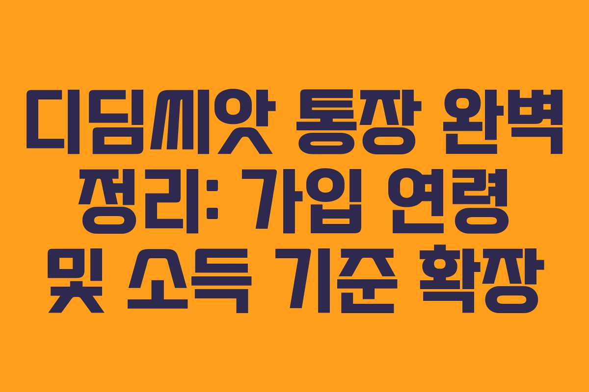 디딤씨앗 통장 완벽 정리: 가입 연령 및 소득 기준 확장