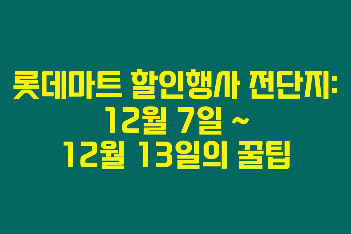 롯데마트 할인행사 전단지: 12월 7일 ~ 12월 13일의 꿀팁