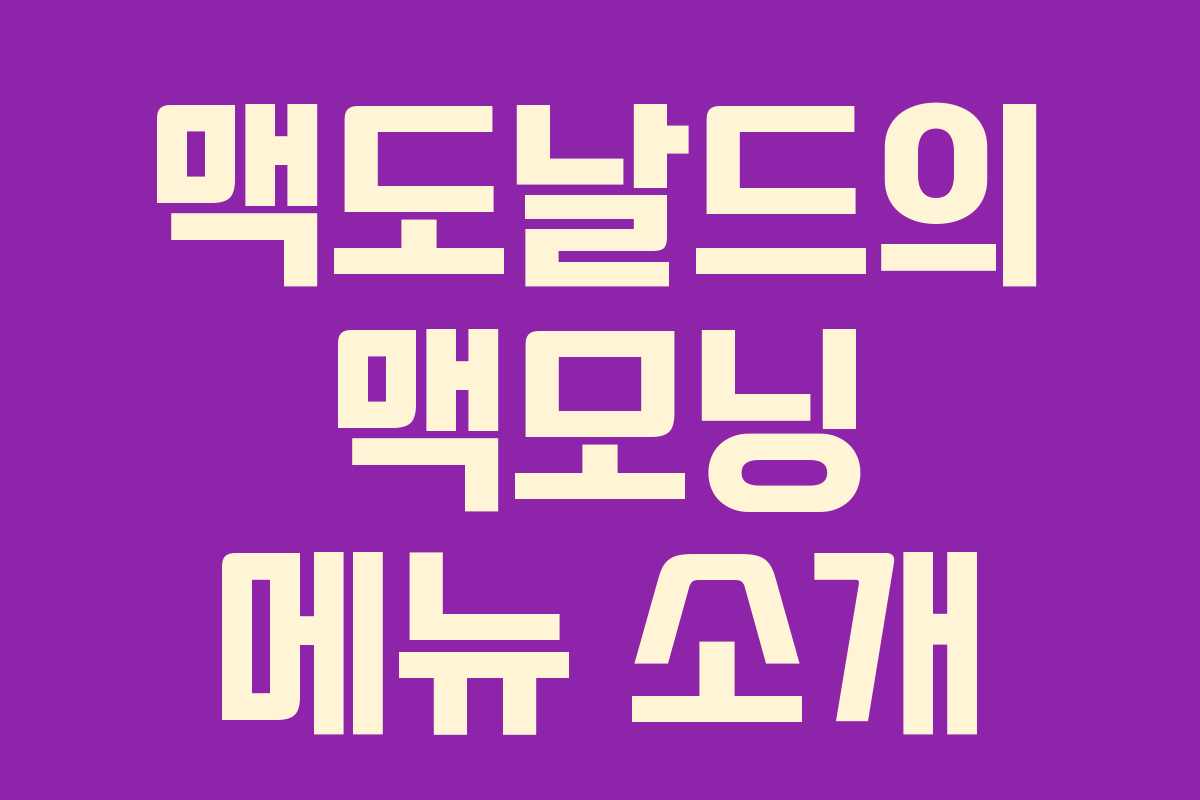 맥도날드는 아침 식사 시간에 맞춰 특별한 메뉴인 맥모닝을 제공합니다. 오전 4시부터 10시 30분까지 제공되는 이 메뉴는 잉글리시 머핀을 사용한 다양한 햄버거로 구성되어 있어, 아침에 간편하면서도 맛있게 즐길 수 있는 옵션입니다.