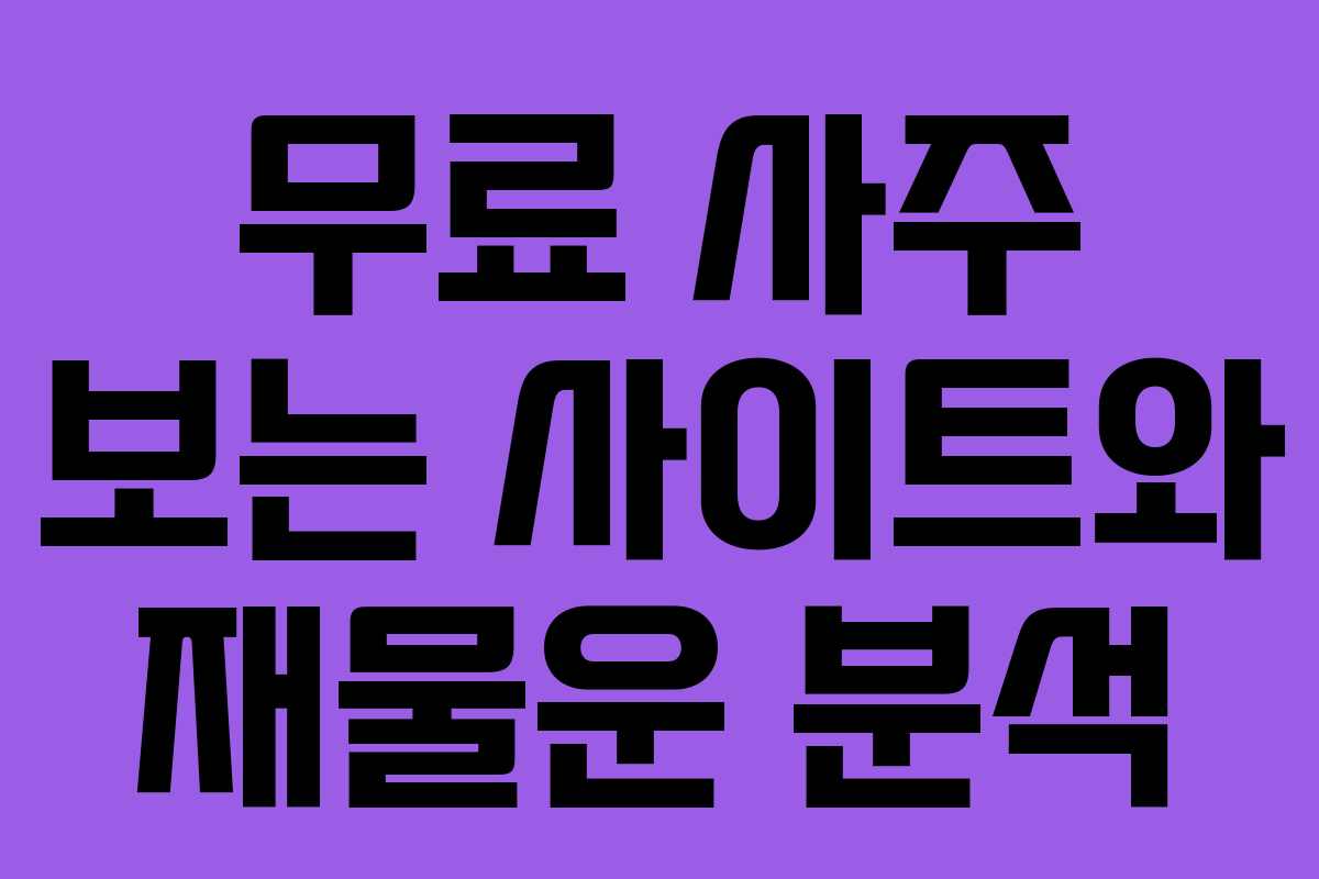 인터넷에서는 다양한 무료 사주 서비스가 제공되고 있습니다. 이러한 서비스는 사용자가 입력한 생년월일과 성별에 따라 개인의 운세를 분석해줍니다. 예를 들어, 생년월일과 출생 시간을 입력하면, 자신의 재물운과 함께 행운의 숫자를 확인할 수 있습니다.