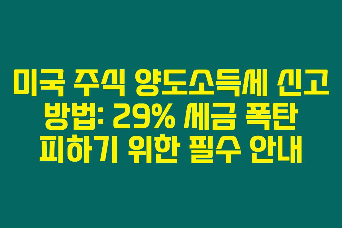 제가 직접 경험해본 결과로는, 미국 주식 투자에서는 양도소득세 신고가 반드시 필요하다는 점을 깊이 느꼈습니다. 신고 절차를 놓치게 되면 29%에 달하는 세금 폭탄을 맞을 수 있으니, 아래를 읽어보시면 효과적으로 세금 문제를 해결할 수 있는 방법을 찾으실 수 있을 것입니다.
