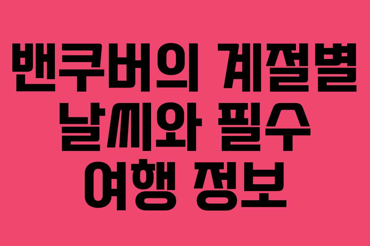 밴쿠버는 그 아름다움과 온화한 기후로 많은 이들에게 사랑받고 있는 도시입니다. 이곳에서의 생활이나 여행을 계획하는 분들을 위해, 계절별 날씨와 추천 장소에 대해 자세히 안내드리겠습니다. 각 계절마다 날씨가 다르고 그에 맞는 옷차림과 추천 활동이 있으니 참고하시기 바랍니다.