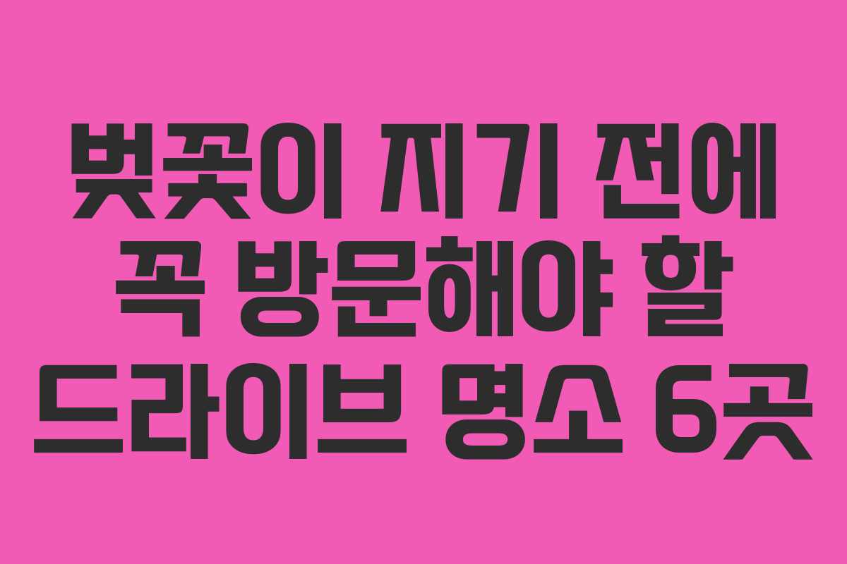 벚꽃 드라이브를 위한 추천 명소와 특징