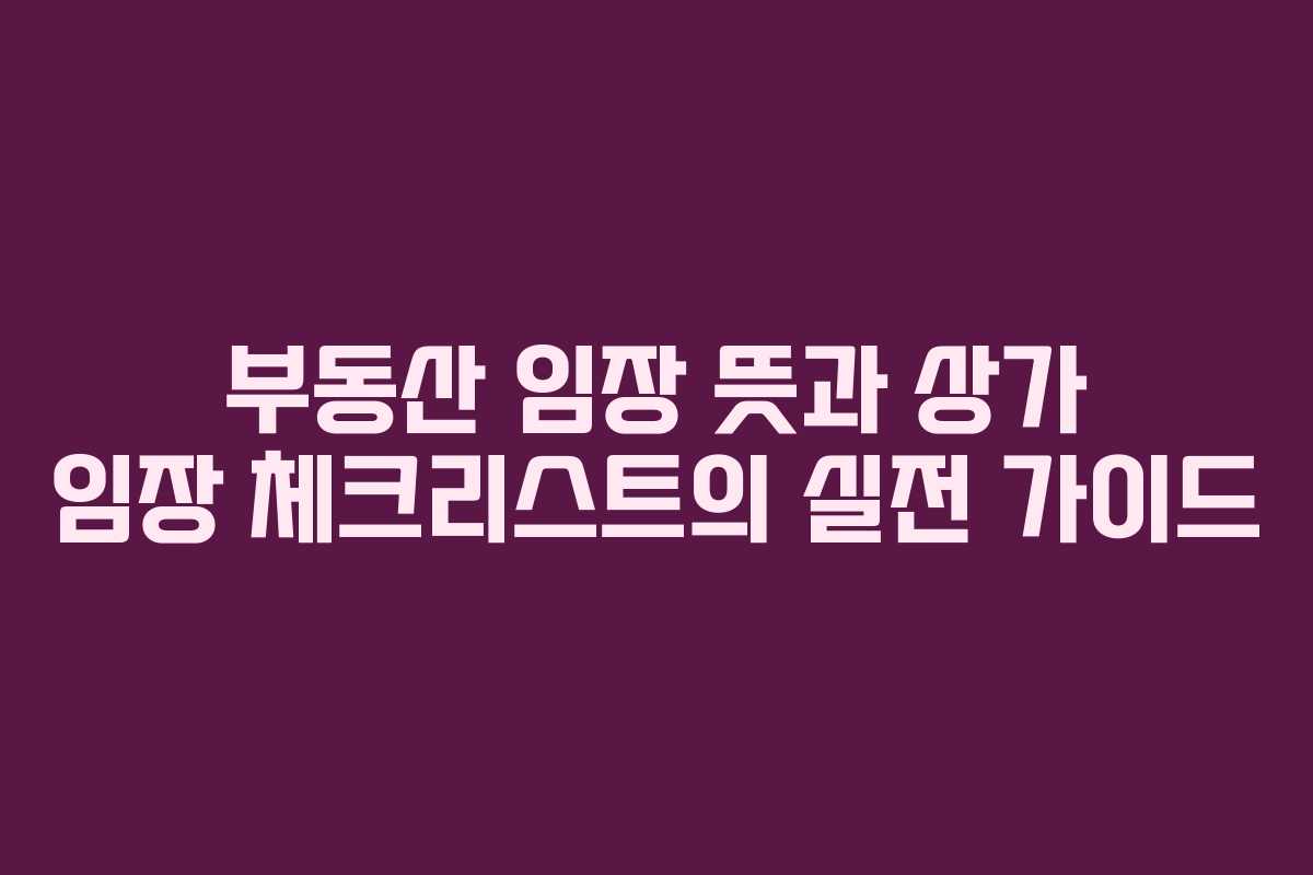 키워드: 부동산 임장 뜻, 상가 임장 체크리스트, 상가 투자, 상권 분석, 임대차 비교, 공인중개사 정보, 수익률 분석, 업종 파악, 학군/인프라 분석, 주차 및 접근성, 리스크 관리,