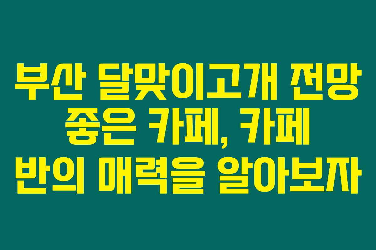 부산 여행 중 달맞이 고개를 찾는다면 이 카페는 꼭 들러야 합니다. “부산 달맞이고개 전망 좋은 카페, 카페 반” 이곳의 매력은 단순히 맛있는 커피에만 국한되지 않습니다. 아름다운 경치와 쾌적한 분위기를 동시에 경험할 수 있는 곳이거든요. 부산 달맞이고개 카페를 찾고 있는 분이라면, 이 카페를 꼭 기억해야 할 것 같아요.