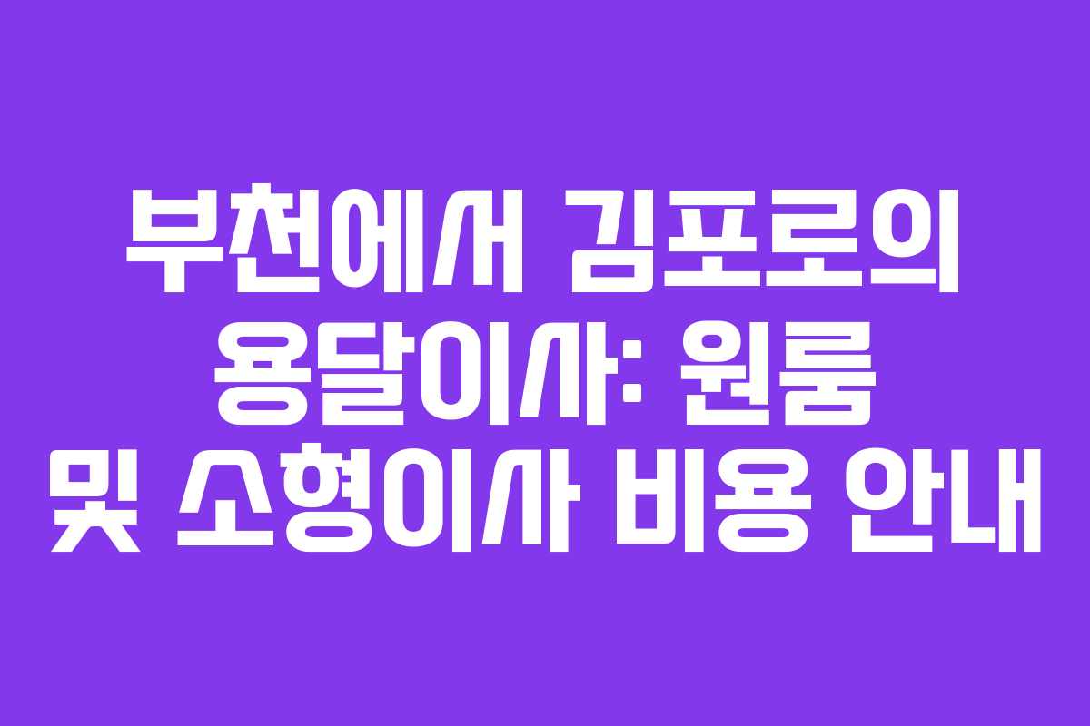 부천에서 김포로의 이사를 계획하고 계신가요? 원룸이나 소형이사를 고려하는 분들을 위해 필요한 정보와 비용을 안내해 드리겠습니다.