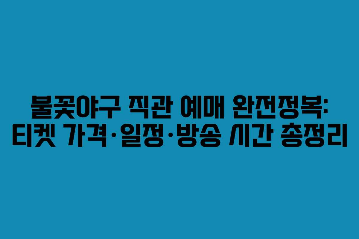 - Q1. 불꽃야구 직관 예매는 언제 열리나요?