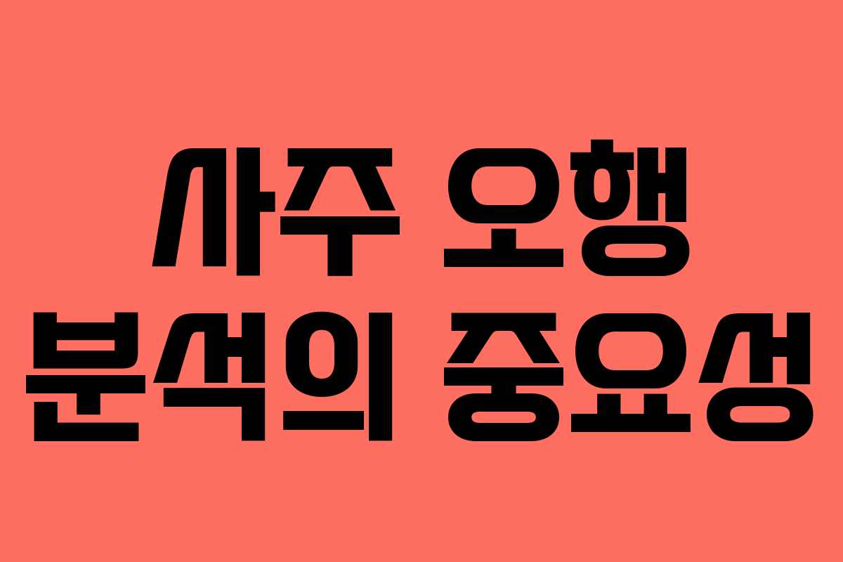 사주 오행 분석은 생년월일을 바탕으로 목, 화, 토, 금, 수의 오행을 통해 개인의 성격과 운명을 이해하는 방법입니다. 이러한 분석을 통해 삶의 방향을 설정하고 더욱 의미 있게 살아갈 수 있는 길잡이가 됩니다.