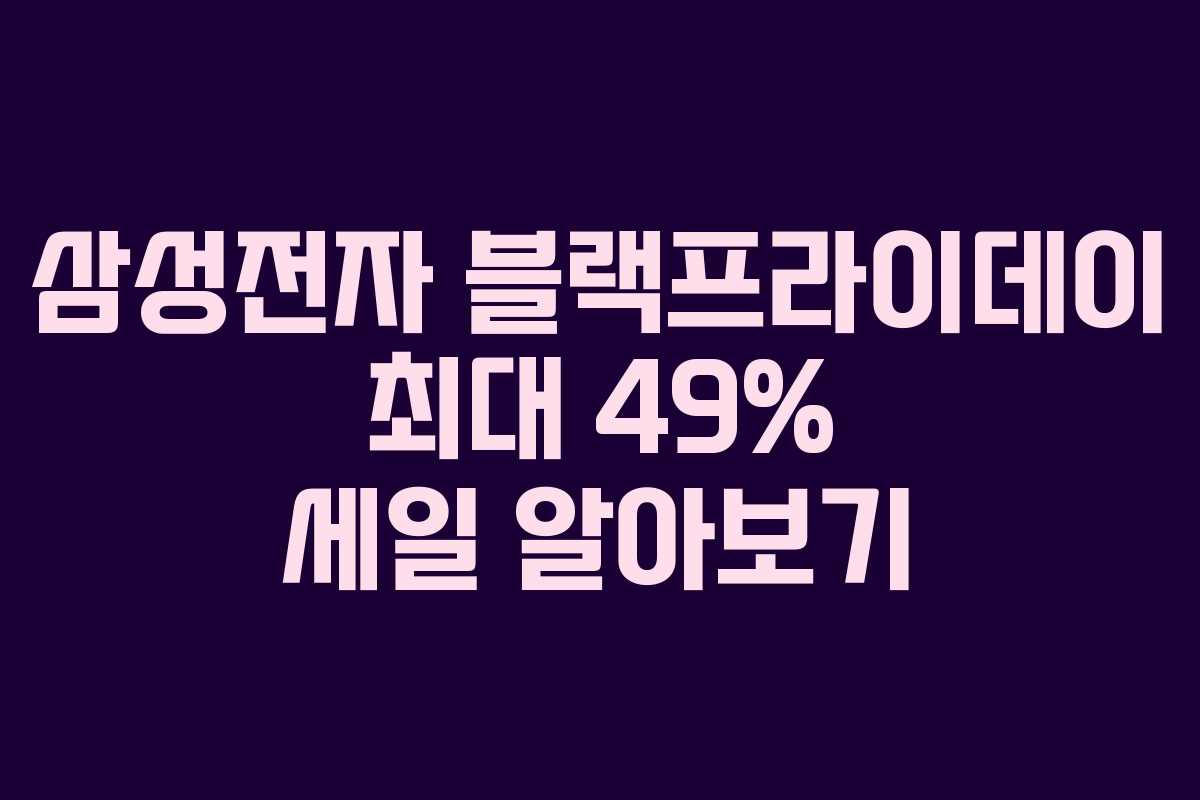 삼성전자가 블랙프라이데이를 맞아 최대 49%의 할인 혜택을 제공합니다. 이번 기회를 통해 가전제품이나 전자제품을 저렴한 가격에 구매할 수 있는 좋은 찬스입니다.