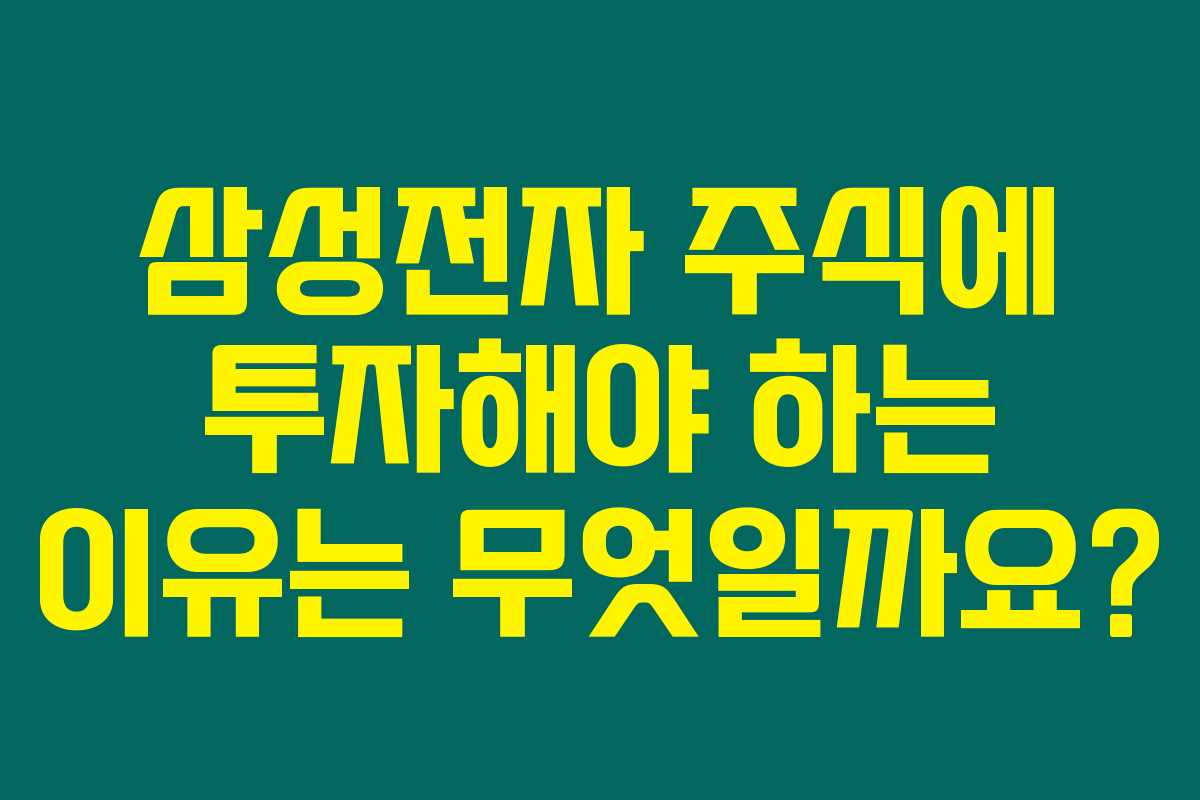 삼성전자 주식에 대한 고민을 하고 계신가요? 이미 삼성전자 주식에 투자할까 고민 중이시라면, 아래의 정보를 반드시 확인해보세요. 삼성전자는 단순한 기업이 아닌 미래를 함께 만들어가는 파트너라고 생각해요. 이 글에서는 삼성전자 주식에 투자해야 하는 이유들에 대해 알아볼게요.