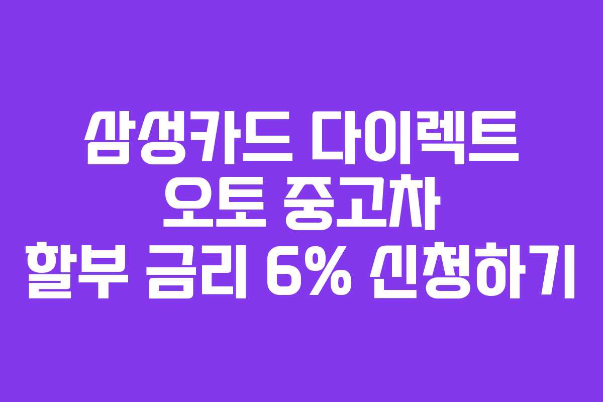 삼성카드 다이렉트 오토 중고차 할부는 유리한 대출 조건과 캐시백 혜택을 통해 중고차 구매 시 경제적 이득을 제공합니다. 최신 정보는 삼성카드 공식 홈페이지를 통해 확인하는 것이 좋습니다.