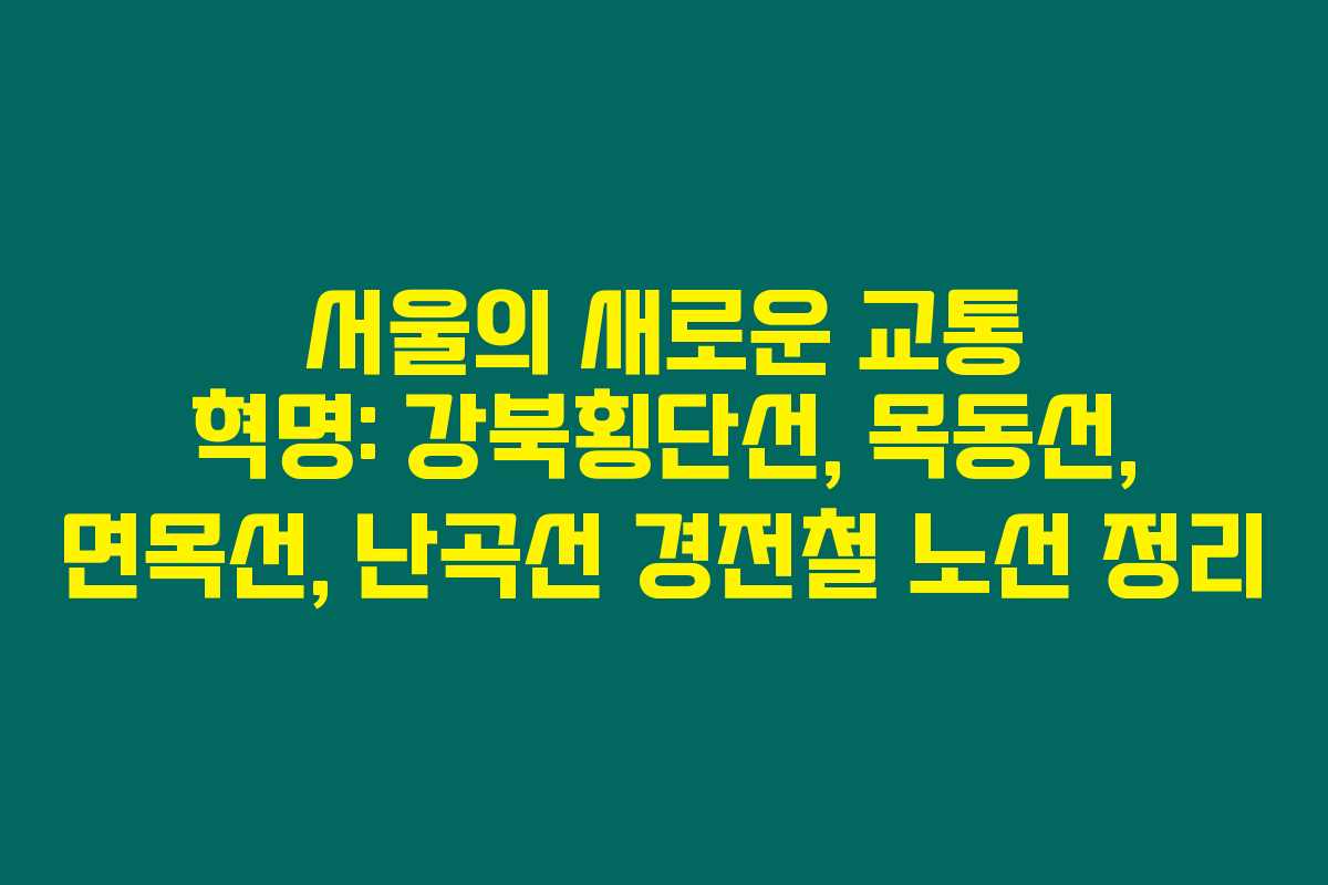 제가 직접 경험해본 결과로는, 서울의 교통 문제 해결을 위한 경전철 네트워크가 점차 구체화되고 있습니다. 특히 강북횡단선, 목동선, 면목선, 난곡선은 서울의 교통체증 완화에 큰 역할을 할 것으로 기대됩니다. 아래를 읽어보시면 각 노선의 특징과 중요성을 확인할 수 있습니다.