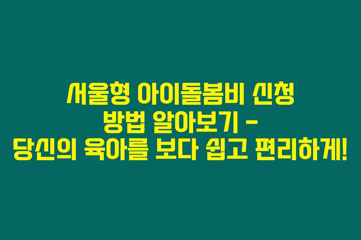 서울형 아이돌봄비를 신청하기 위해서는 몇 가지 기본 요건이 있어요. 제가 직접 체크해본 결과, 다음과 같은 조건들을 충족해야 합니다.