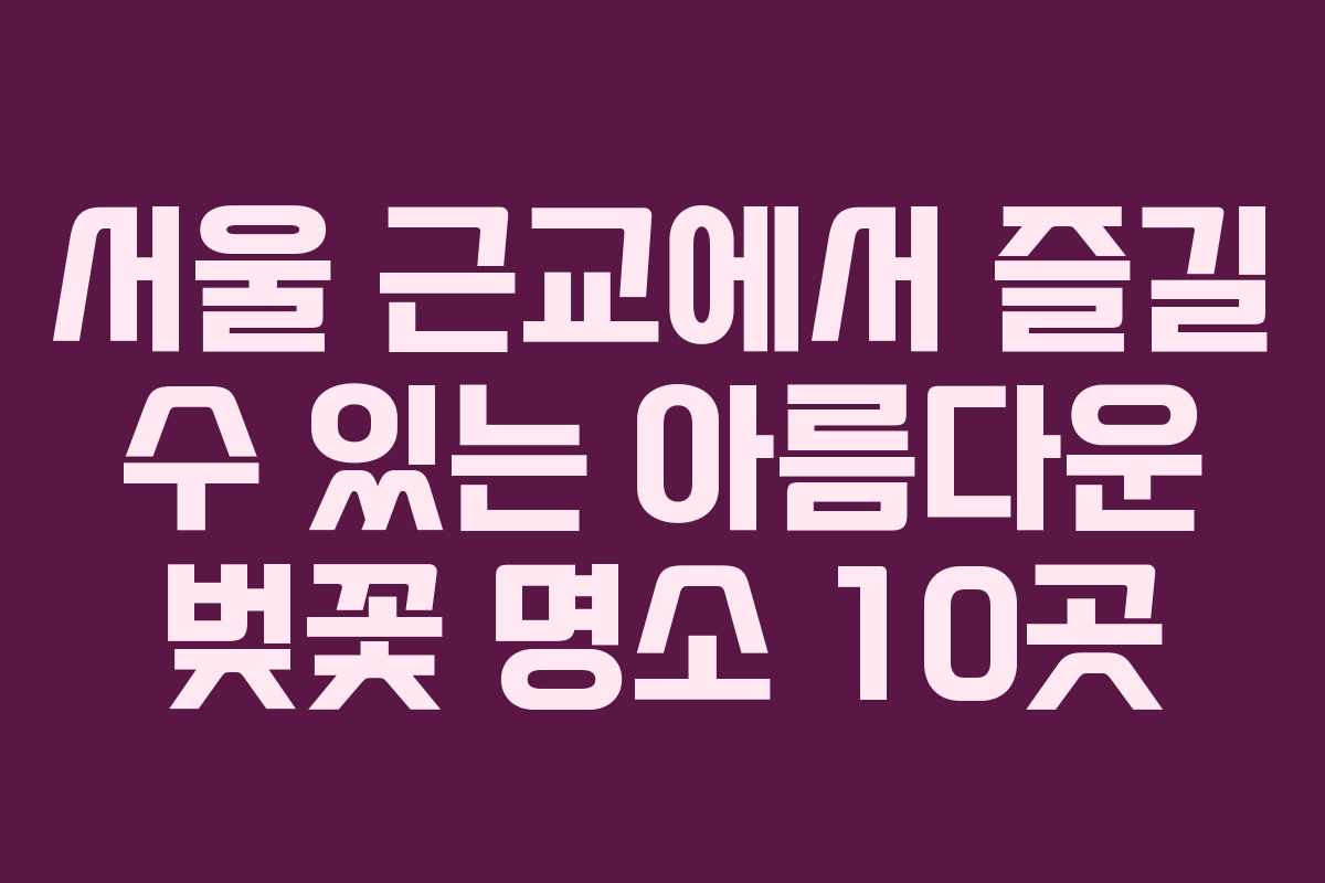 서울 근교에는 벚꽃을 만끽할 수 있는 다양한 장소가 있습니다. 매년 봄이 되면 이곳에서는 벚꽃이 만개하고, 각종 축제가 열리며 많은 이들이 그 아름다움을 즐기기 위해 방문합니다. 이번 포스팅에서는 서울 근교에서 벚꽃놀이를 즐기기에 적합한 10곳을 소개하겠습니다.