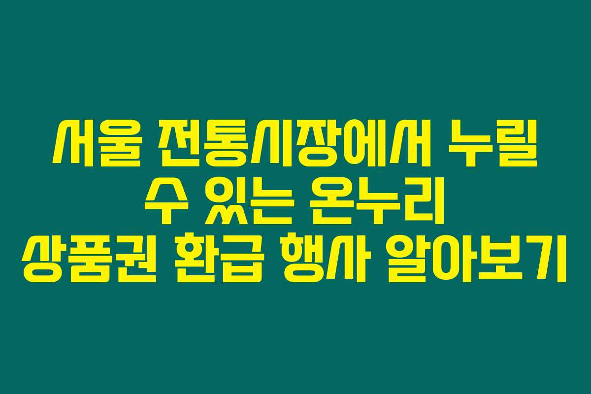 아래를 읽어보시면 서울의 전통시장 중 온누리 상품권 환급 행사를 실시하는 곳들을 쉽게 찾아볼 수 있습니다. 좋은 혜택을 통해 알뜰한 쇼핑을 즐겨보세요!