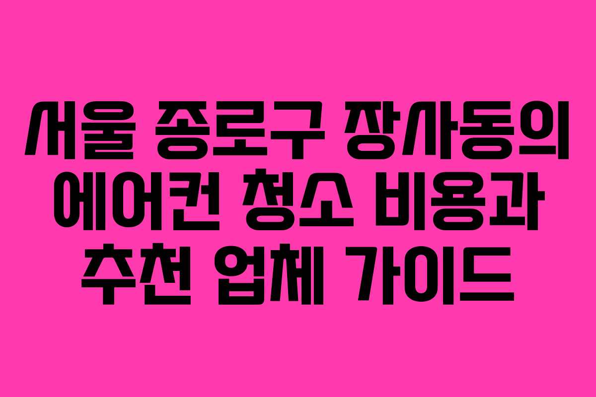 서울 종로구 장사동에는 다양한 에어컨 청소 업체가 있습니다. 다음은 추천할 만한 몇 가지 업체입니다.