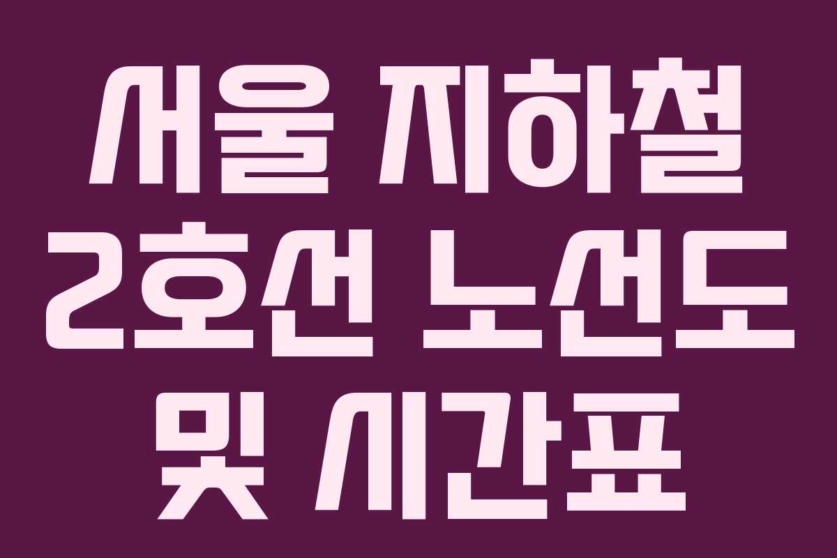 서울 지하철 2호선은 많은 사람들이 이용하는 주요 대중교통 수단입니다. 이 글에서는 2호선의 노선도와 시간표를 소개하고, 주요 역의 첫차 및 막차 시간에 대해서도 안내하겠습니다.