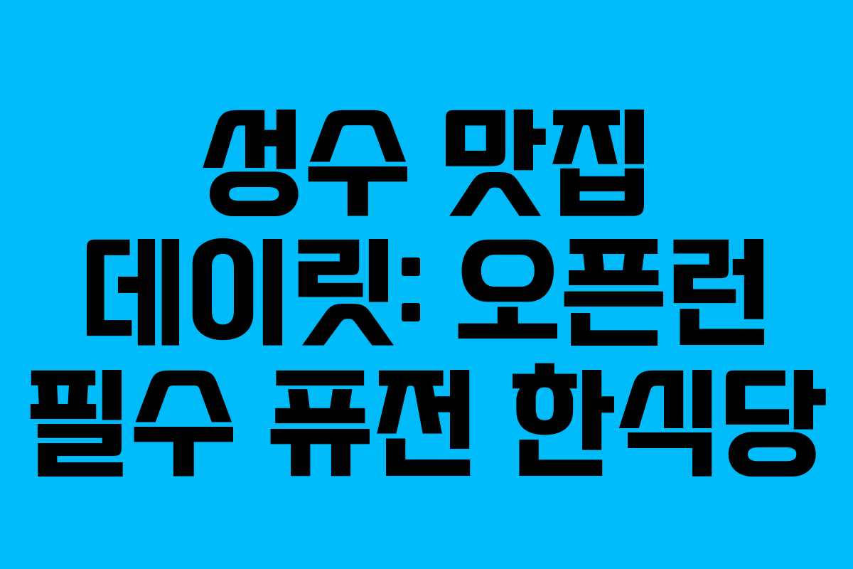 성수 맛집 데이릿: 오픈런 필수 퓨전 한식당