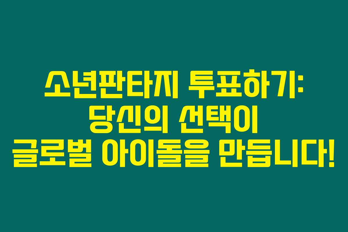 소년판타지 투표하기는 이렇게 간단합니다. 글로벌 아이돌의 주인공이 될 가능성을 가진 소년들에게 당신의 소중한 vote를 남겨주세요. 다음에는 어떤 멤버가 더욱 주목받을지 정말 기대되네요!