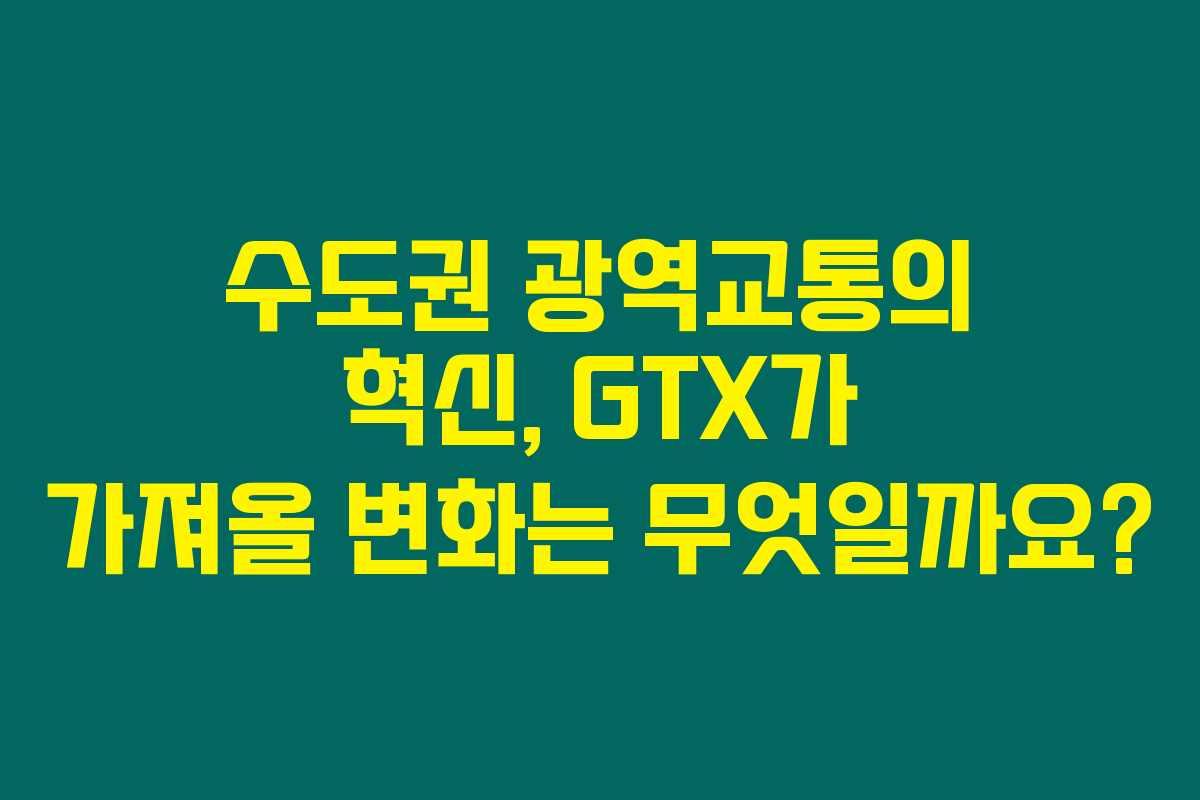 GTX가 개통되면 수도권 외곽과 서울 도심을 연결하면서 우리의 일상에 어떤 혁신적인 변화가 올지 궁금하지 않으신가요? 서울과 수도권의 교통 문제를 해결하고자 하는 이 신개념 광역교통수단의 도입은 그 자체로 기대를 모으고 있습니다. 아래를 읽어보시면 GTX의 모든 것과 함께, 여러분의 생활에 미칠 긍정적인 영향을 확인할 수 있을 거예요.
