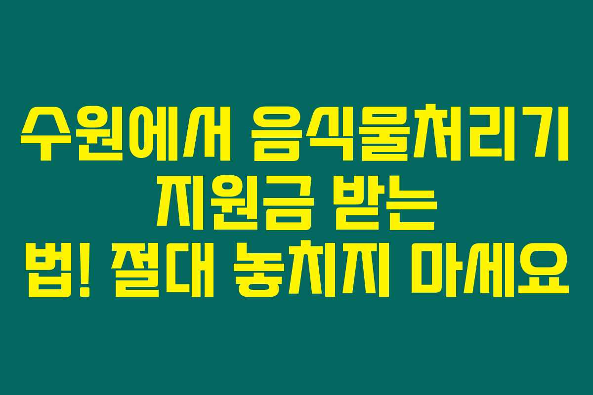 수원에 거주하시는 여러분, 혹시 음식물쓰레기 문제로 고민하고 계신가요? 음식물처리기가 있다면 정말 편리할텐데, 부담되는 가격이 고민이시라면 주목해 보세요. 수원시에서는 가정에서 사용할 수 있는 음식물처리기 구매를 위한 지원금을 제공하고 있습니다. 아래를 읽어보시면 이 지원금에 대한 모든 정보를 상세히 확인할 수 있습니다.