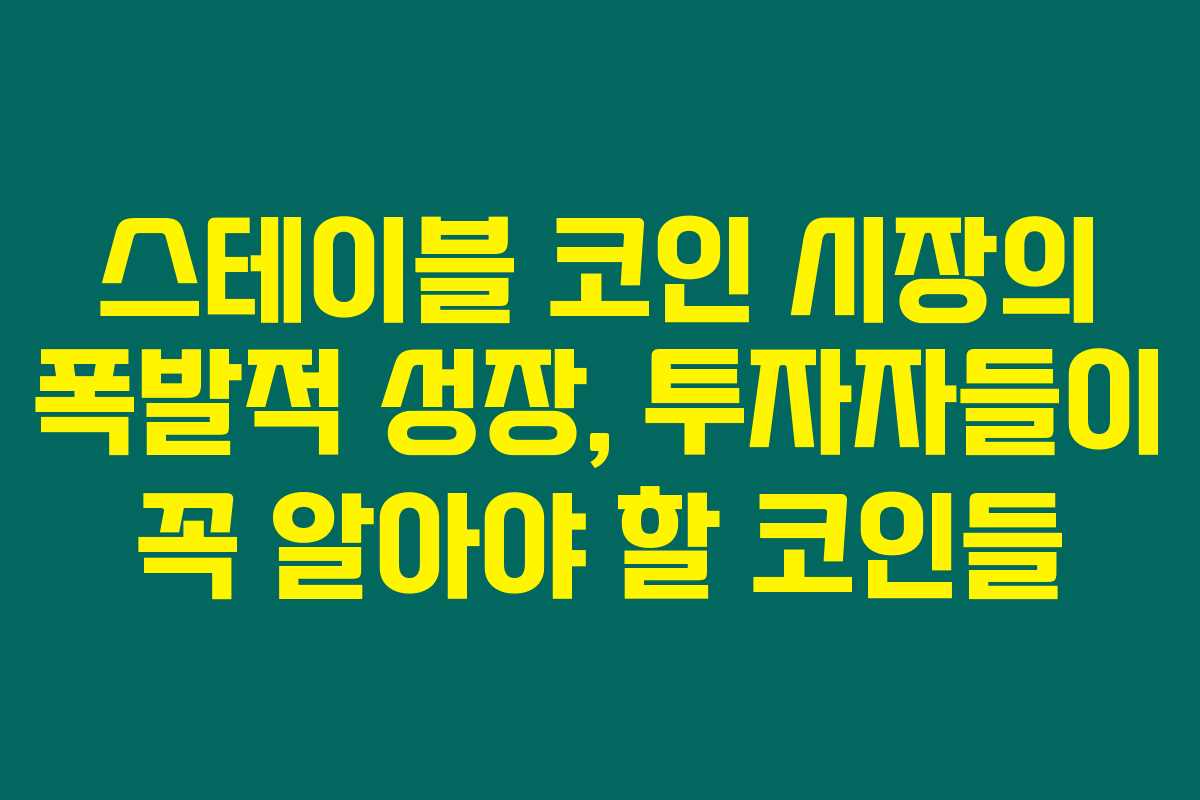 제가 직접 리서치해본 바로는, 최근 스테이블 코인 시장이 폭발적인 성장을 보이고 있으며, 이는 암호화폐 생태계의 중심으로 자리잡는 계기가 되고 있습니다. 하지만 단순히 시장이 뜨거워진다고 해서 무작정 투자에 나서는 것은 위험할 수 있습니다. 아래를 읽어보시면 스테이블 코인이 중요한 이유와 함께, 지금 주목해야 할 유망 코인들을 소개하겠습니다.