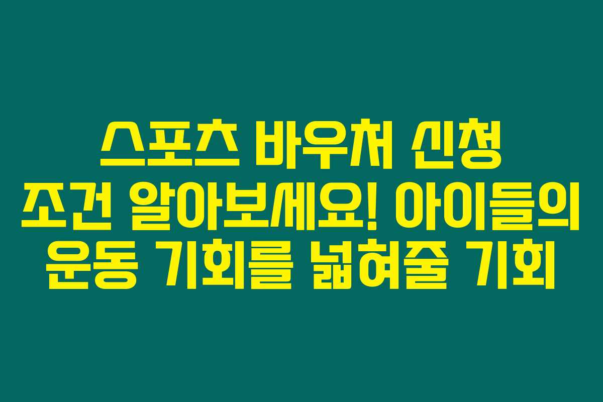 어린이와 청소년을 위한 스포츠 강좌 이용권인 스포츠 바우처를 통해 아이들에게 더 많은 운동 기회를 제공할 수 있습니다. 만약 여러분의 자녀가 5세에서 18세 사이에 해당한다면 이 기회를 놓치지 마세요! 스포츠 바우처를 신청하기 위한 조건과 방법을 아래에서 소개해 드릴게요.