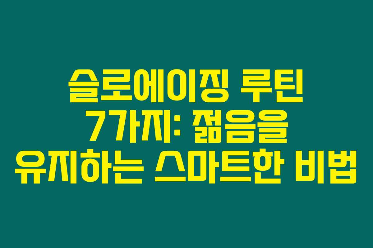 - Q2: 슬로에이징을 위해 가장 단순한 방법은 무엇인가요?