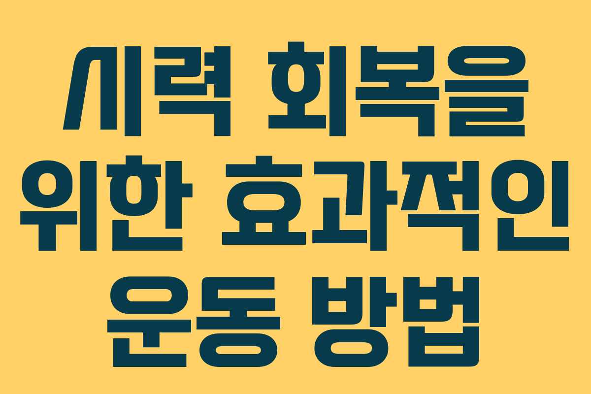 운동은 시력을 회복하는 데 도움이 되지만, 심각한 시력 저하가 있는 경우 전문의의 상담을 받는 것이 중요합니다. 운동과 함께 정기적인 검진을 통해 눈 건강을 관리하세요.
