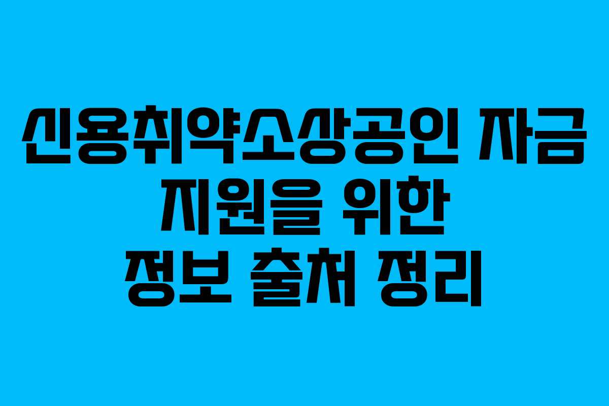 신용취약소상공인 자금 지원 정보는 다양한 출처에서 확인할 수 있습니다. 아래의 표를 통해 주요 정보 출처를 정리해 보았습니다.