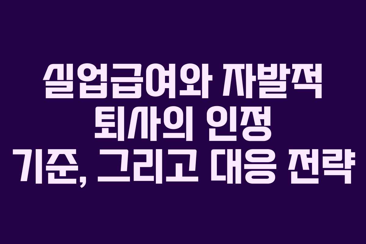 실업급여와 자발적 퇴사의 인정 기준, 그리고 대응 전략