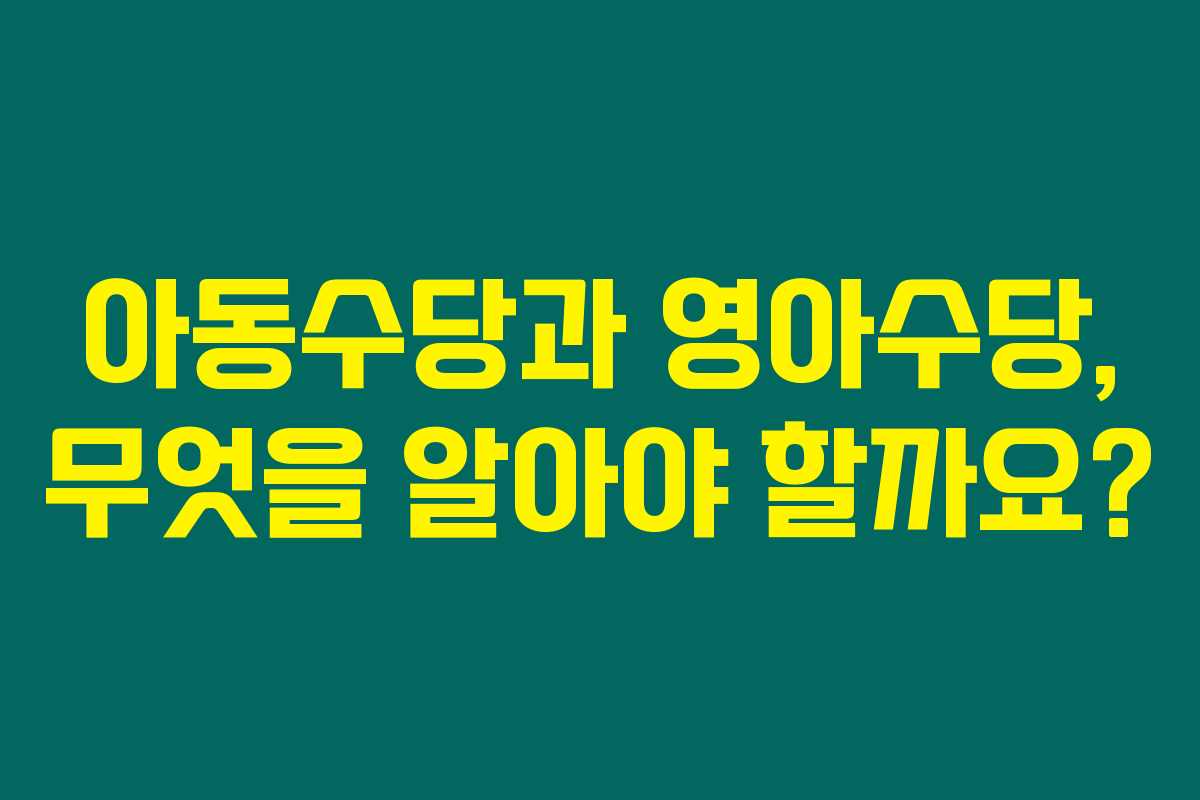 아동수당과 영아수당은 부모님들에게 혼란을 줄 수 있는 수당입니다. 제가 직접 경험해본 결과, 이 두 가지의 차이를 제대로 이해하는 것이 매우 중요하더라고요.