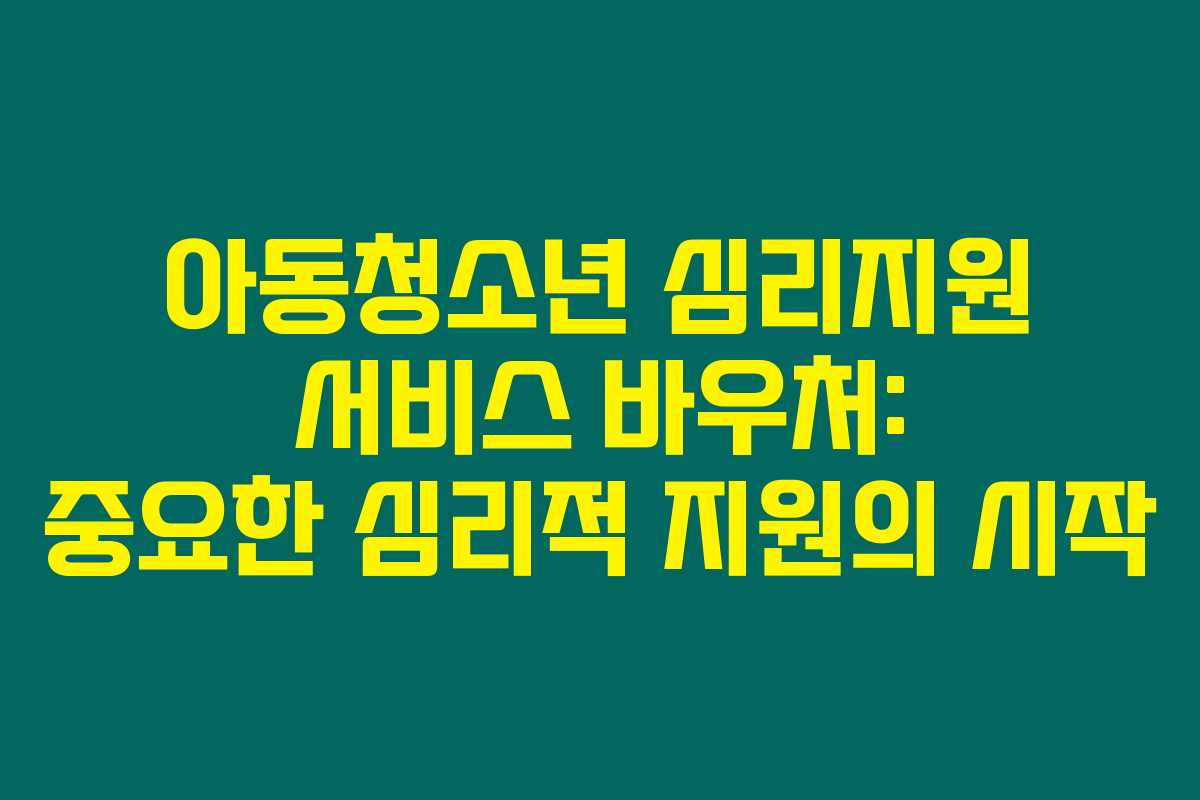 제가 직접 알아본 바로는, 아동청소년 심리지원 서비스 바우처는 부모와 아이들에게 매우 중요한 혜택으로, 이는 아동과 청소년의 정서적 문제를 해결하고 건강한 성장을 도와줄 수 있는 프로그램이에요. 이 글을 통해 아동청소년 심리지원 서비스의 중요성과 신청 방법, 지원 내용에 대해 자세히 알아보실 수 있을 겁니다.