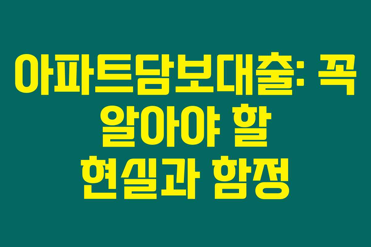 1. 아파트담보대출, 쉽게 생각할 수 없는 이유