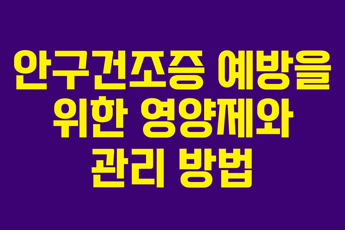 현대인의 눈 건강을 위협하는 안구건조증은 스마트폰과 컴퓨터 사용 증가로 인해 많은 사람들이 겪고 있는 문제입니다. 이번 글에서는 안구건조증의 증상과 원인, 효과적인 영양제 및 관리법에 대해 알아보겠습니다.