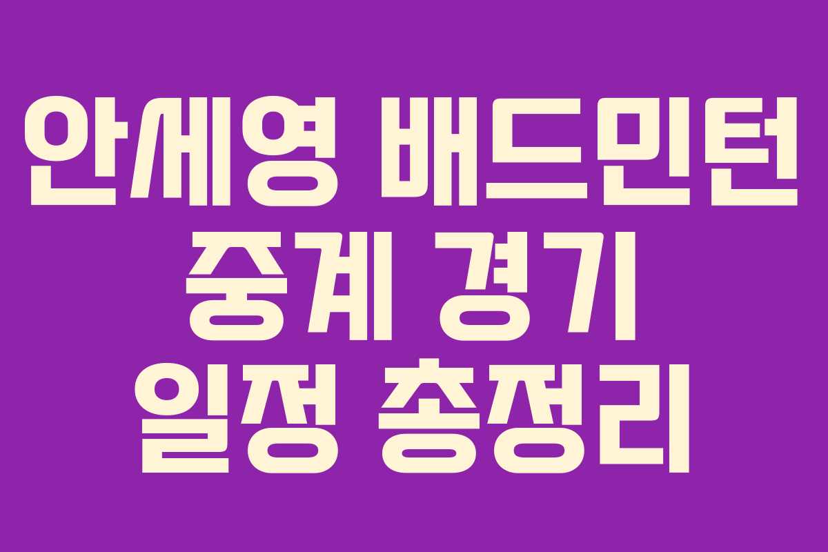 안세영 선수의 경기는 국내에서 SPOTV 및 SPOTV NOW를 통해 실시간 중계될 가능성이 높습니다. 또한, 국제 팬을 위해 BWF TV 유튜브 채널에서도 일부 경기와 하이라이트가 제공될 수 있습니다. 정확한 중계 여부는 대회 직전 다시 확인해야 합니다. 텍스트 및 이미지 실시간 스코어는 네이버 스포츠와 다음 스포츠에서도 확인할 수 있습니다.