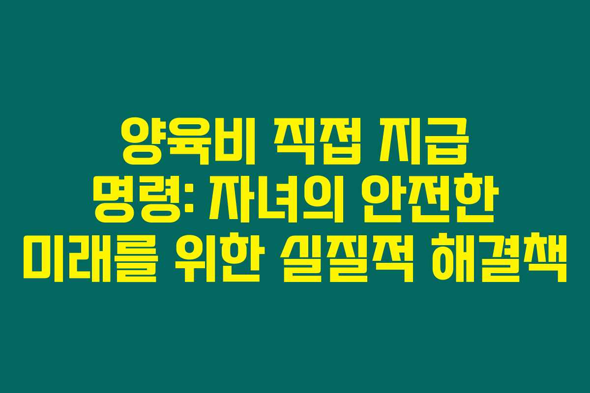 양육비 직접 지급 명령: 자녀의 안전한 미래를 위한 실질적 해결책
