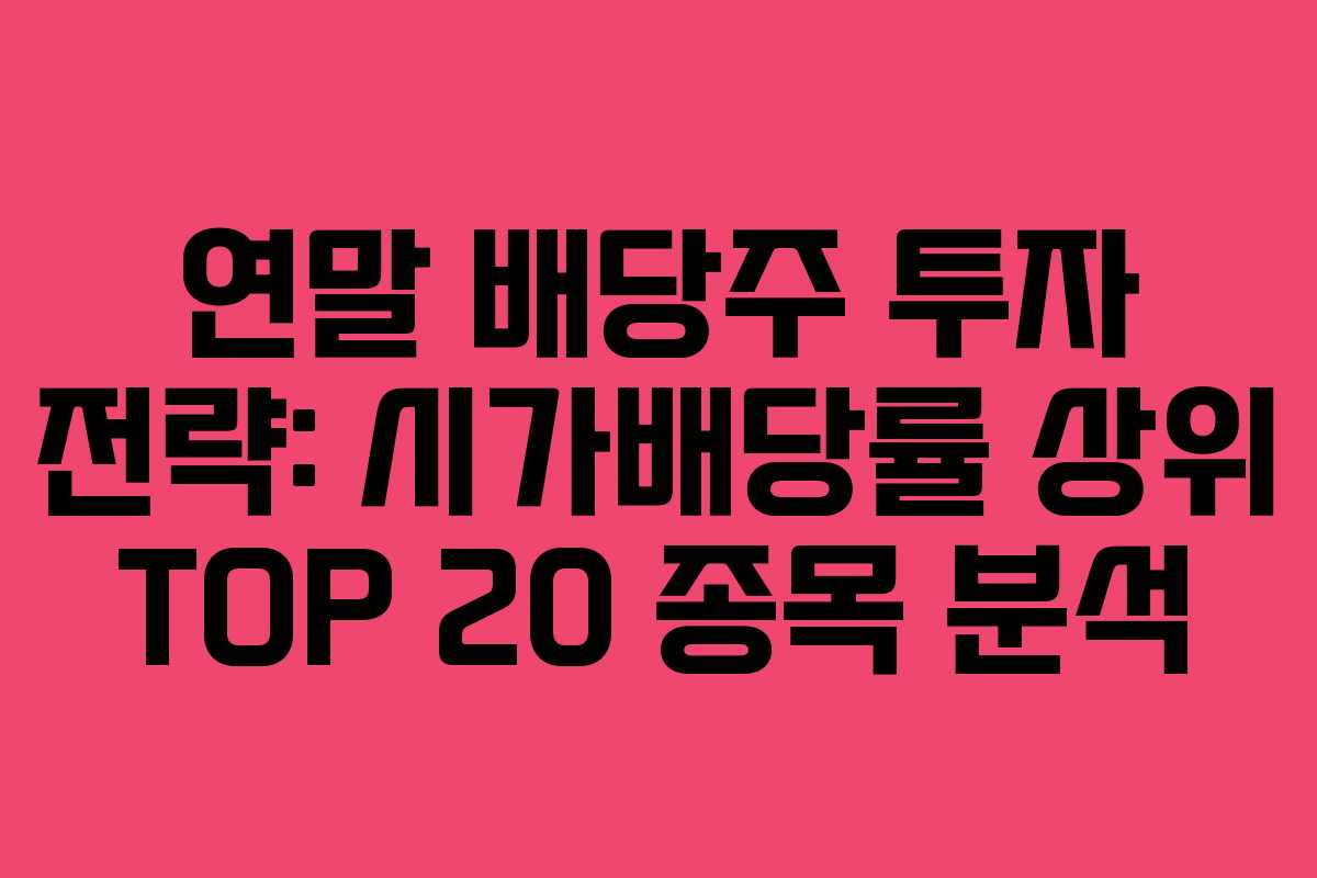연말이 다가오면서 배당주에 대한 관심이 높아지고 있습니다. 특히, 배당주 투자는 안정적인 수익을 추구하는 투자자들에게 매력적인 옵션입니다. 이번 포스팅에서는 연도별 시가배당률 상위 TOP 20 종목을 살펴보며, 향후 투자 전략을 세우는 데 도움을 주고자 합니다.