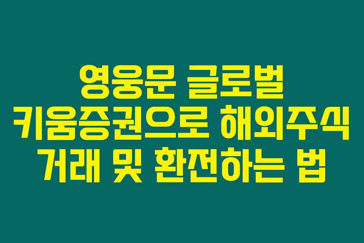해외주식 투자와 환전 방법이 궁금하셨다면 위 정보를 꼭 확인하시길 바래요. 키움증권의 영웅문 글로벌 앱을 통해 간단한 절차로 해외주식 거래와 환전이 가능하니 한번 시도해보세요.