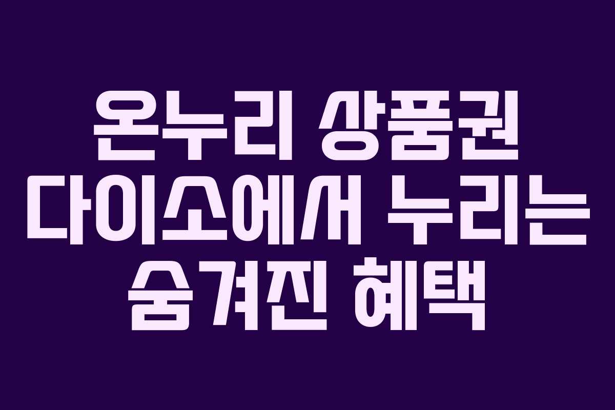 온누리 상품권 다이소에서 누리는 숨겨진 혜택