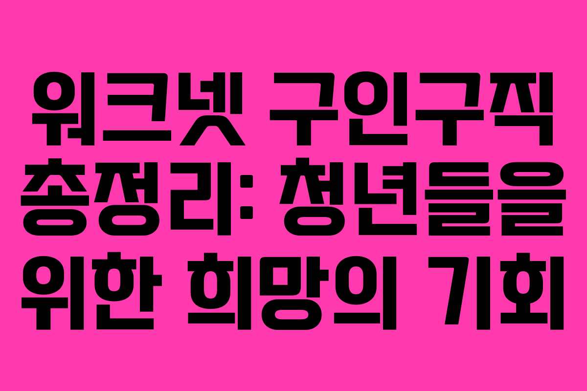 워크넷 구인구직 총정리: 청년들을 위한 희망의 기회