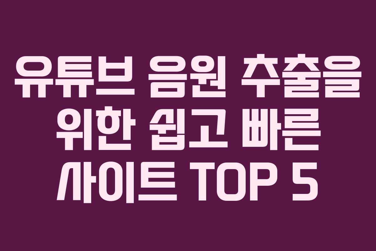 유튜브에서 원하는 음원을 추출하는 과정은 생각보다 간단합니다. 다양한 사이트를 이용하면 몇 번의 클릭으로 음악 파일을 다운로드 받을 수 있습니다. 아래에서는 유튜브 음원 추출을 간편하게 할 수 있는 사이트 다섯 곳을 소개합니다.