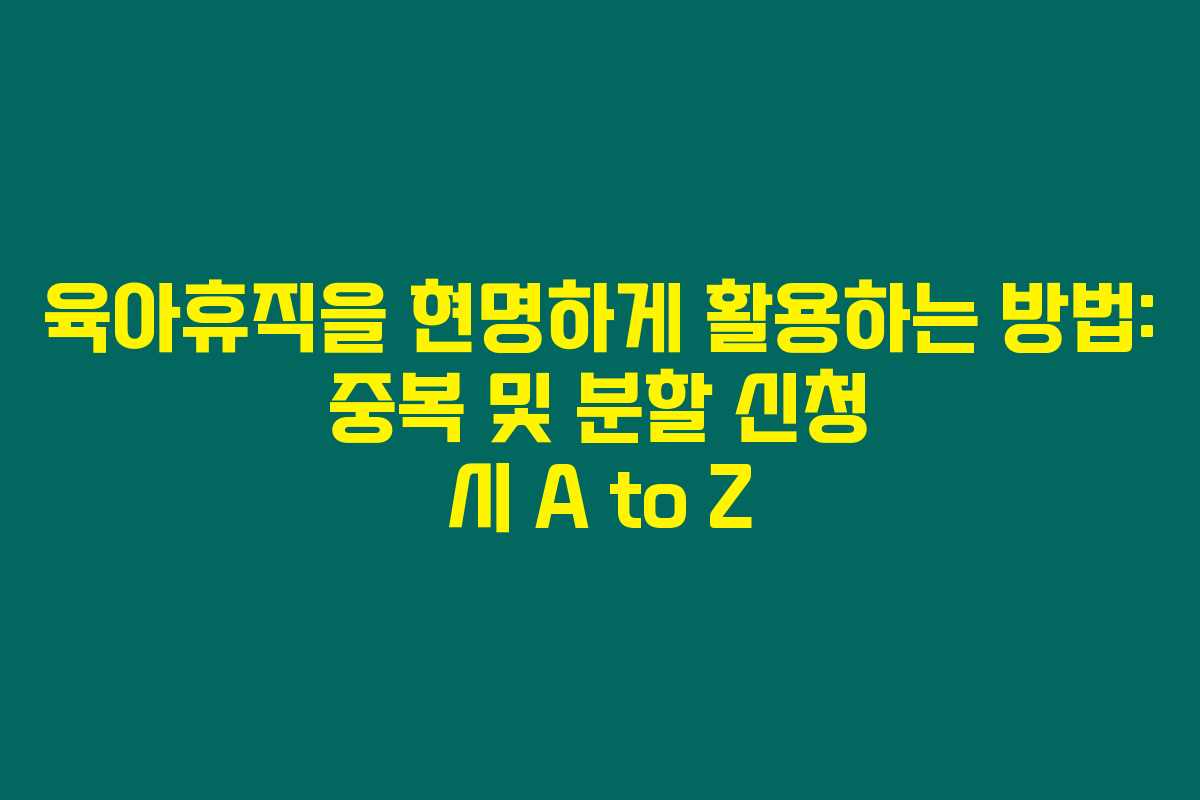 육아휴직을 현명하게 활용하는 방법: 중복 및 분할 신청 시 A to Z