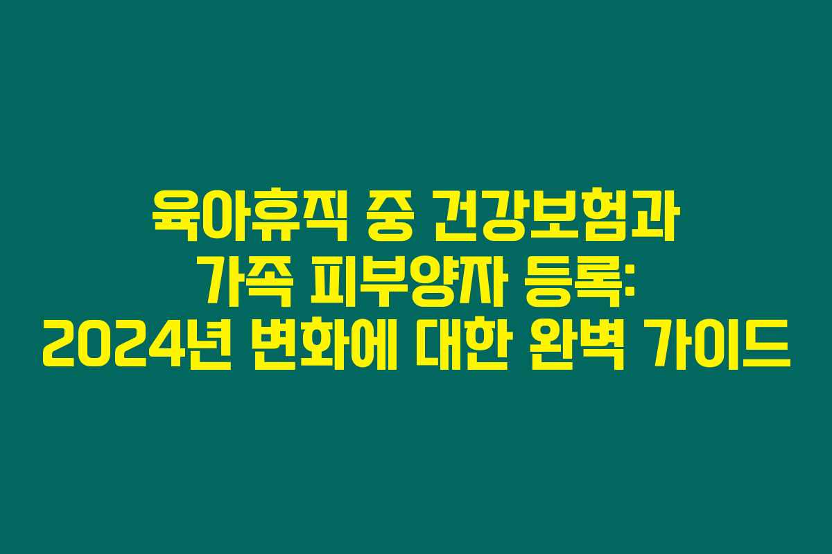 육아휴직 기간 동안 가족의 건강보험에 피부양자로 등록하는 과정은 비교적 간단해요. 하지만 자격 요건을 충족해야 하니, 이것을 반드시 체크해야 합니다.