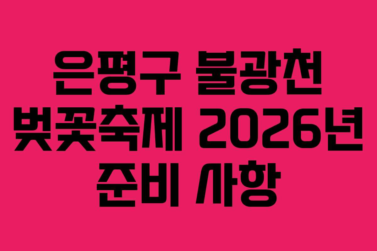 불광천 벚꽃축제는 단순한 꽃 구경을 넘어, 지역 사회의 화합과 문화 예술의 발전을 도모하는 행사이다. 2026년의 축제는 더욱 풍성한 프로그램과 함께 방문객들을 맞이할 준비가 되어 있으니 많은 참여를 기대한다. 벚꽃을 배경으로 한 행복한 순간들이 여러분을 기다리고 있다.