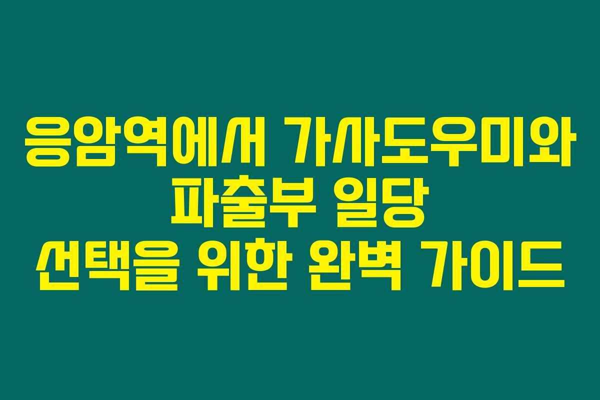 응암역은 다양한 주거 형태와 높은 인구 밀도를 자랑하는 지역입니다. 여기에서 가사도우미나 파출부 일당을 이용하고자 하는 사람들은 많습니다. 아래를 읽어보시면 응암역의 가사도우미와 파출부 일당 선택 시 알아두어야 할 정보에 대해 많은 도움이 될 것입니다.