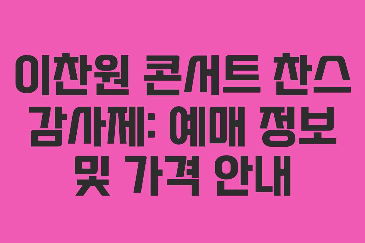 미스터 트롯 출신의 인기 가수 이찬원이 연말을 맞아 특별한 콘서트를 개최합니다. 이번 콘서트는 ‘찬스 감사제’라는 이름으로, 12월에 대구와 서울에서 진행됩니다. 이찬원의 매력적인 공연을 놓치고 싶지 않은 팬들은 아래의 정보를 참고하여 예매를 준비하시기 바랍니다.